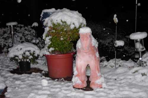 - 10.11.2004 und nun auch noch der erste Schnee bei um Null Grad. 5 cm. ca. sind gefallen bis gegen 6 Uhr - toll! Die Kinder freuen sich und manche Autofahrer auch...